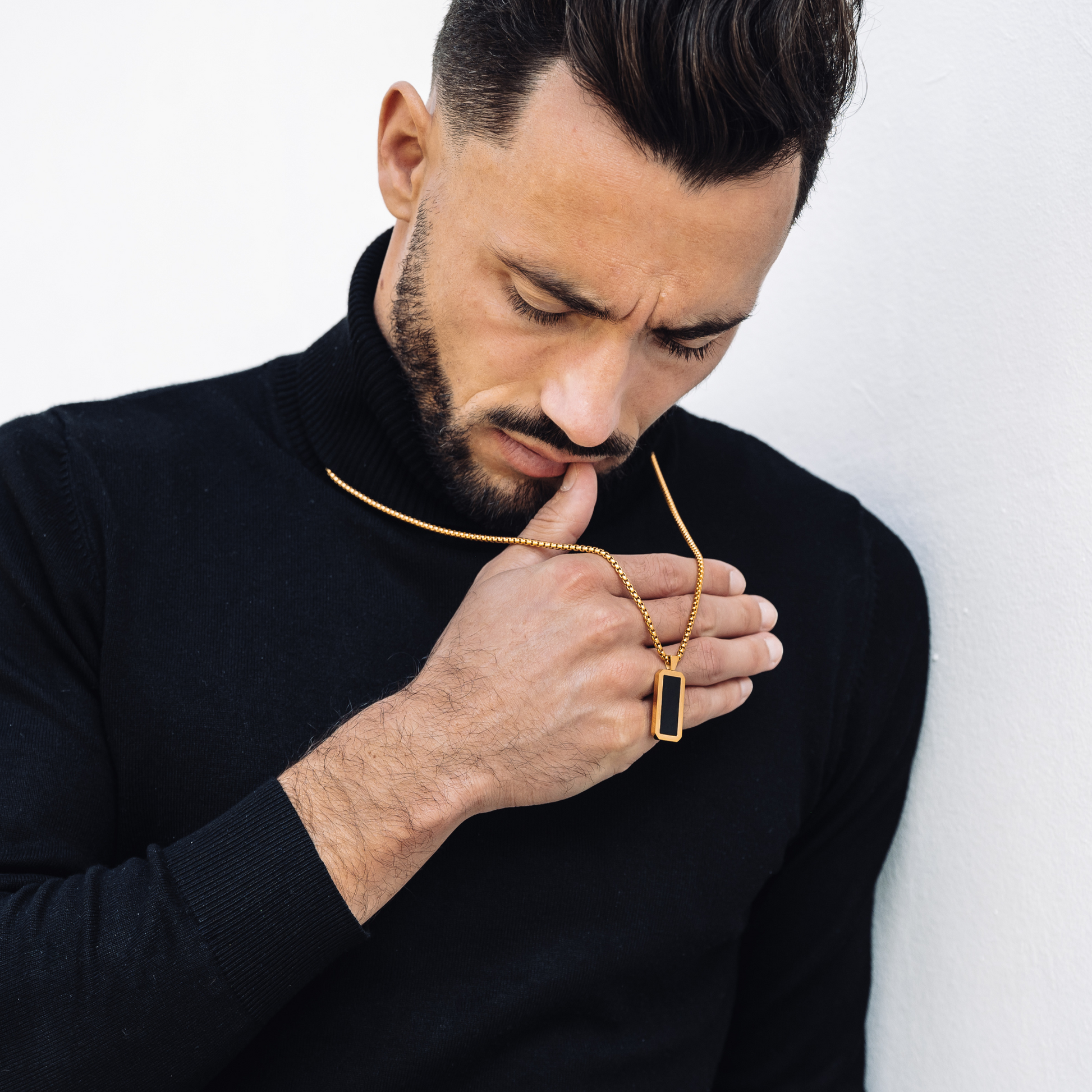 Golden Necklace with Rectangle Onyx Pendant