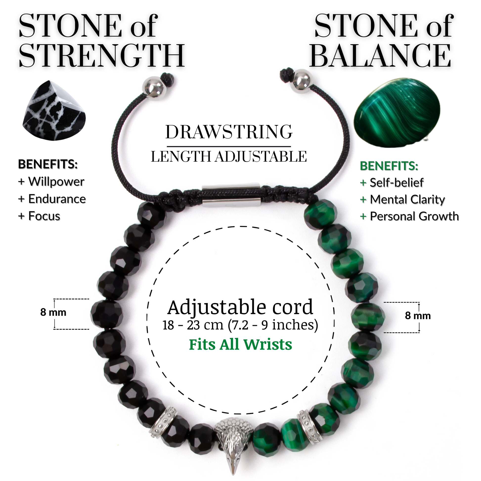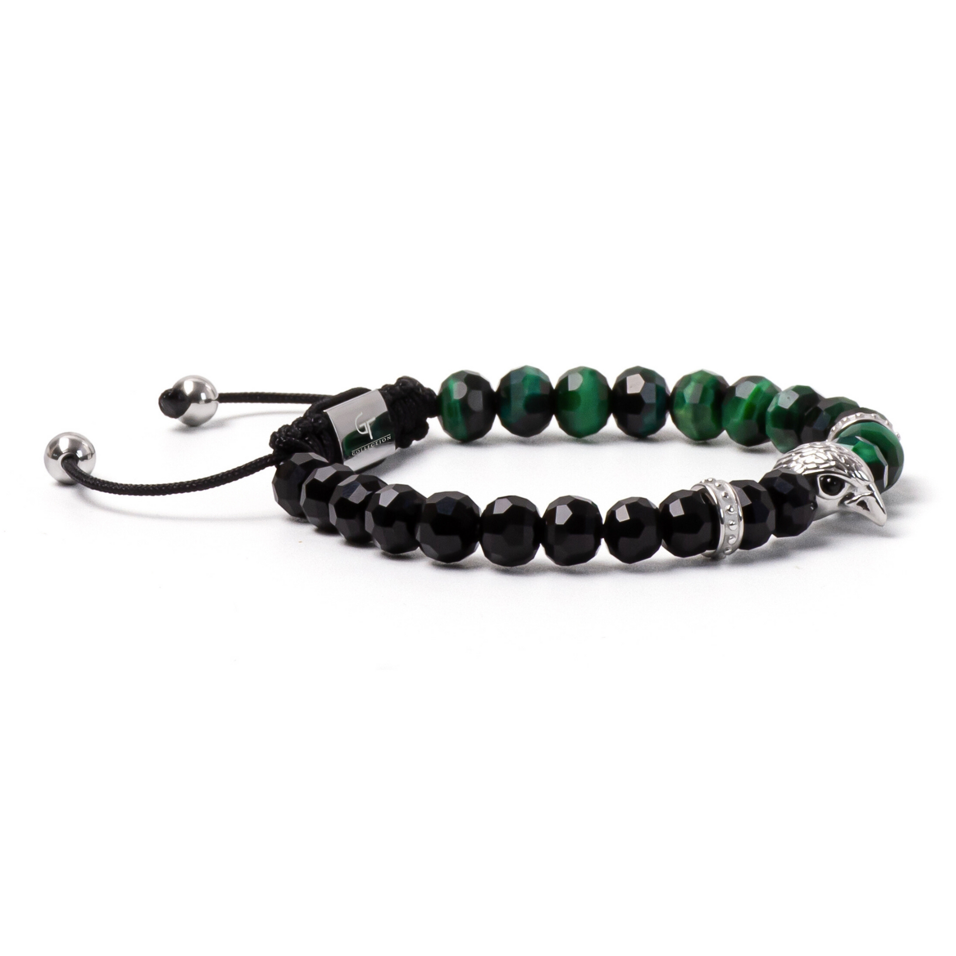Men's AMERICAN EAGLE Bracelet with GREEN TIGER EYE, ONYX Stone