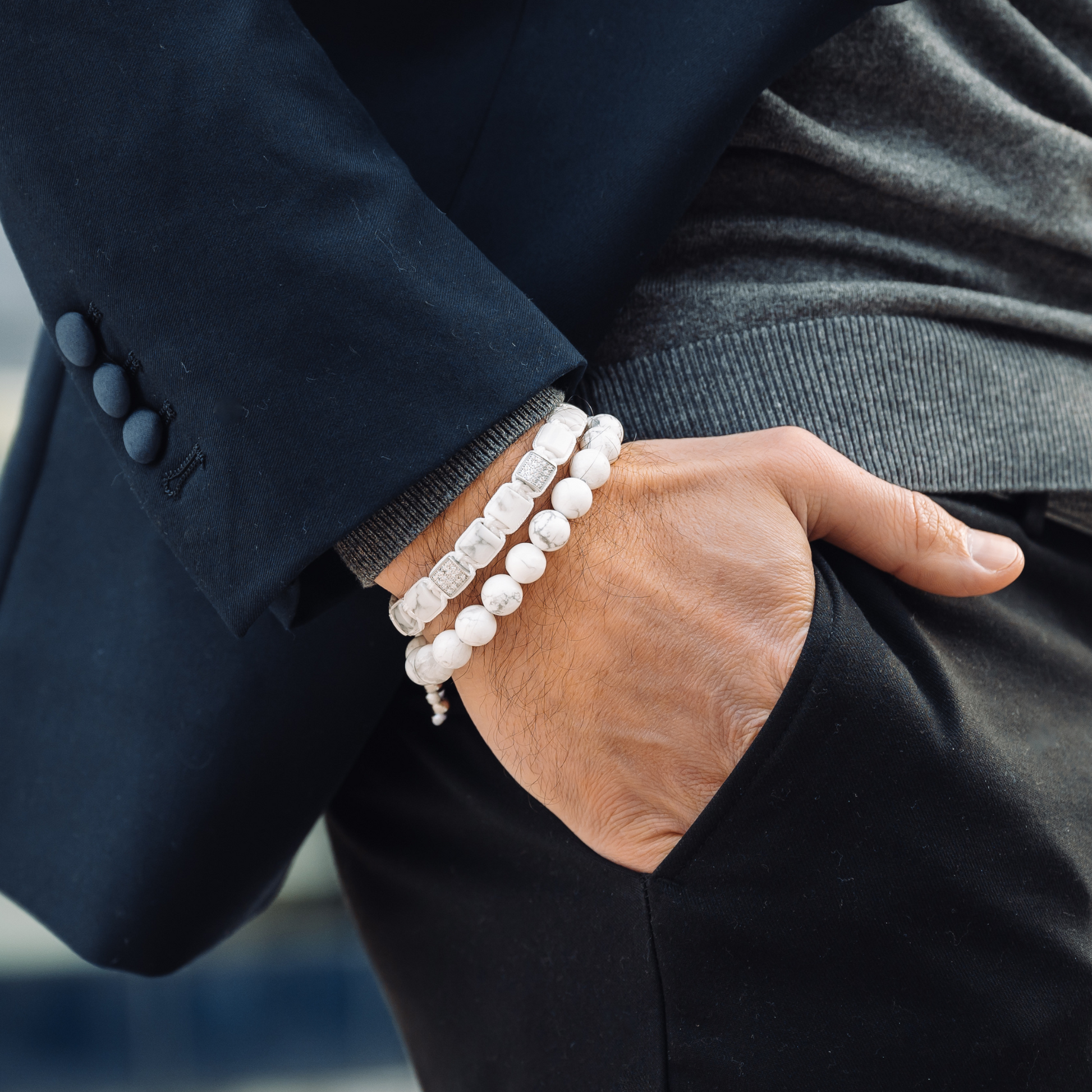 2 PIECE SET - HOWLITE Single Bead & Flatbead Bracelet