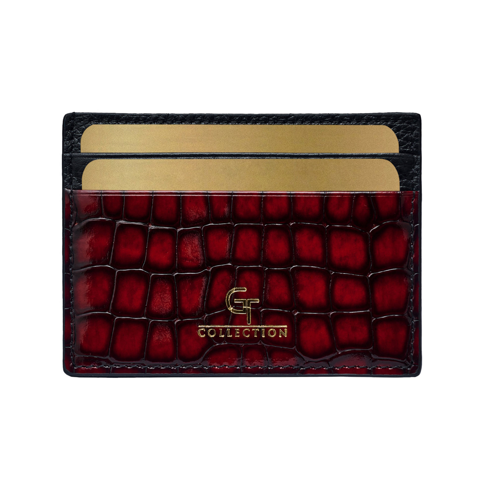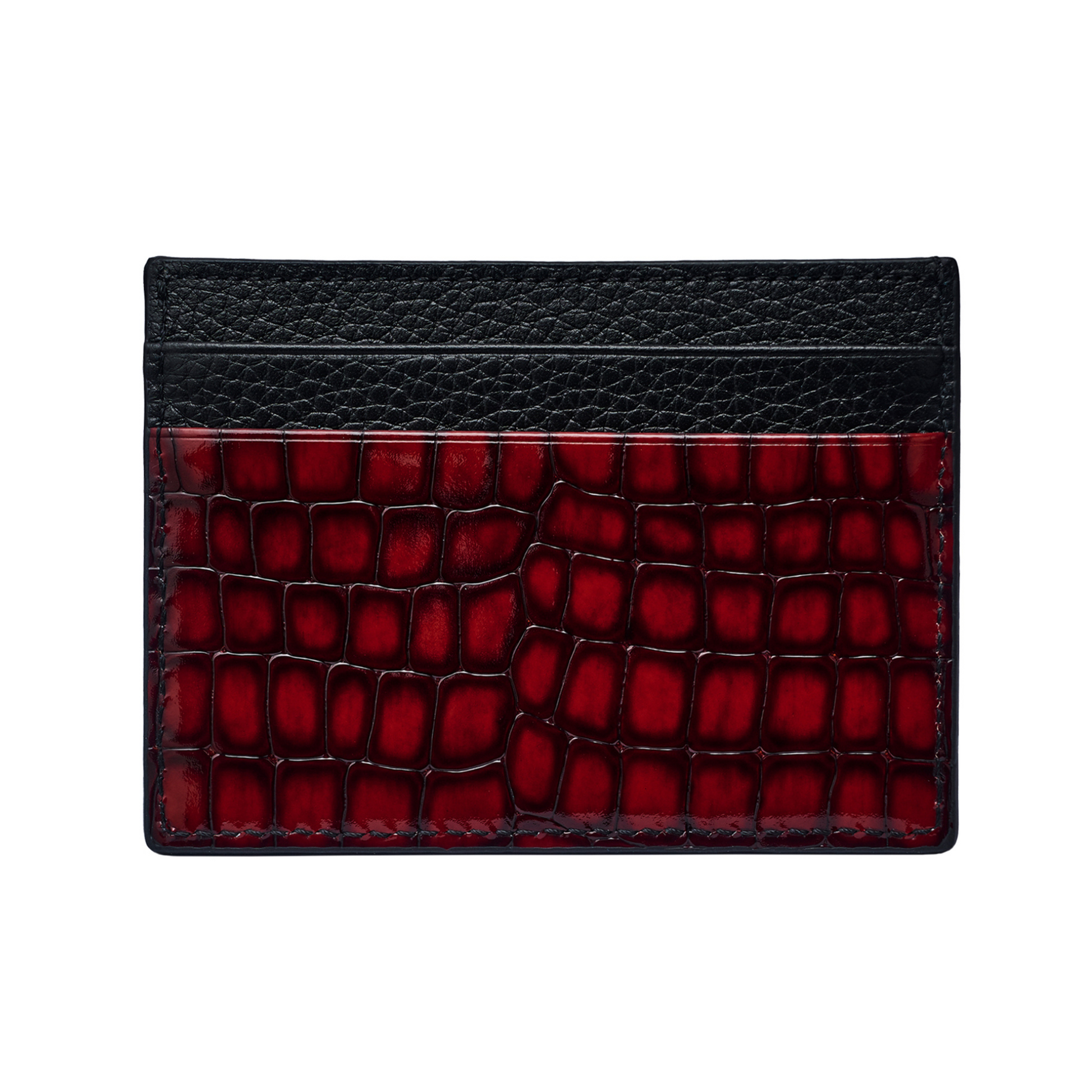 Men's Shiny Croc-Print Card Holder - Red Genuine Leather