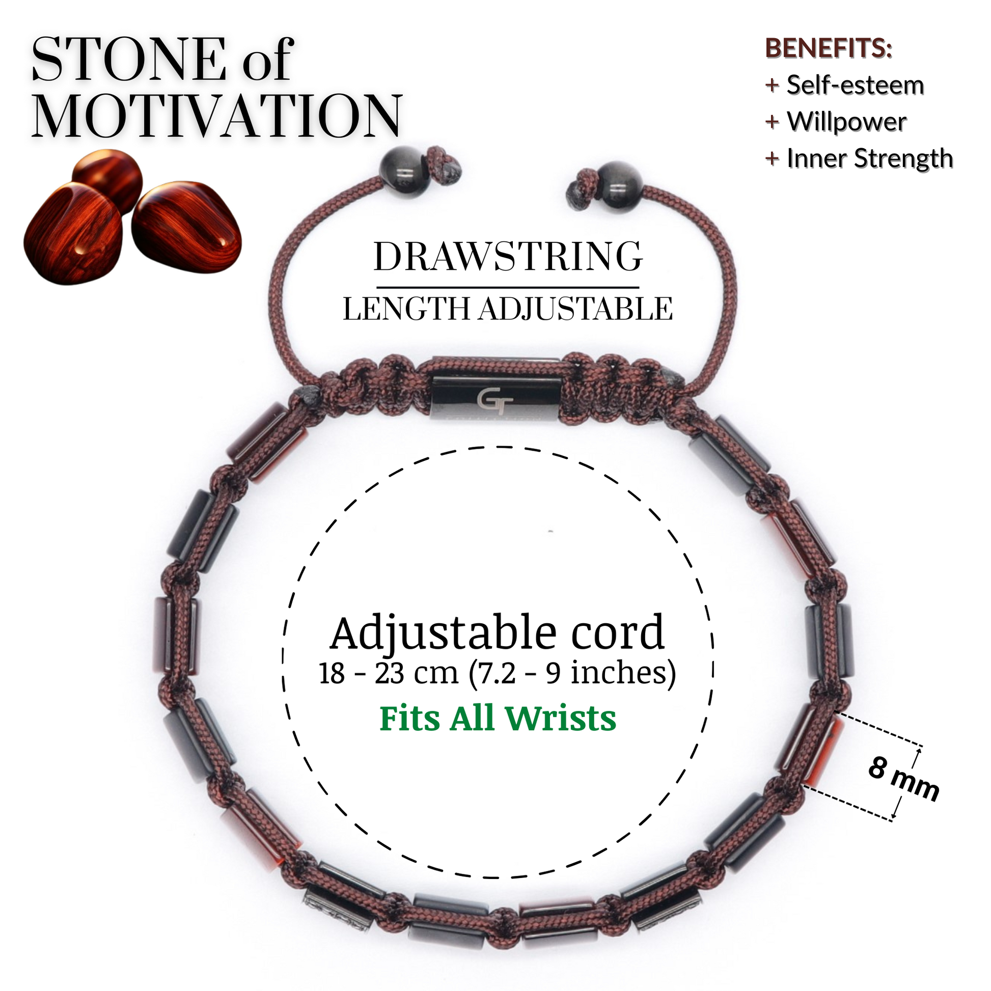HANDCRAFTED BY JEWELRY ARTISANS - GT Collection male beaded bracelets are made using certified natural gemstones and 8 mm flat beads for a beautiful and unique piece of art that you can wear for years to come.