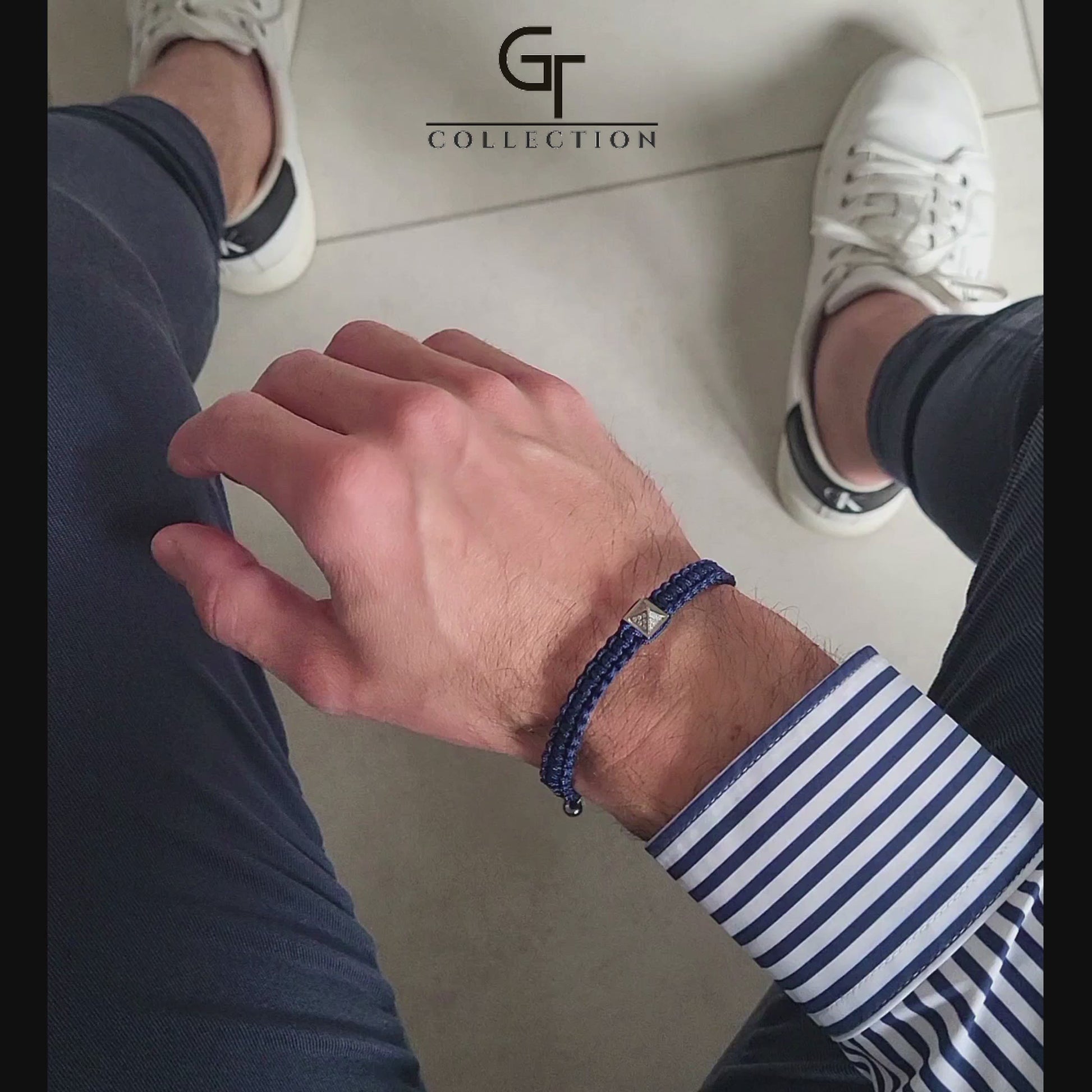 Men's Blue Bracelet - Silver Pyramid with Zircon